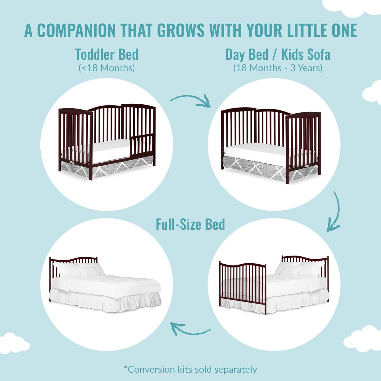 Dream On Me Chelsea 5-In-1 Convertible Crib In Espresso, JPMA Certified(Cherry)