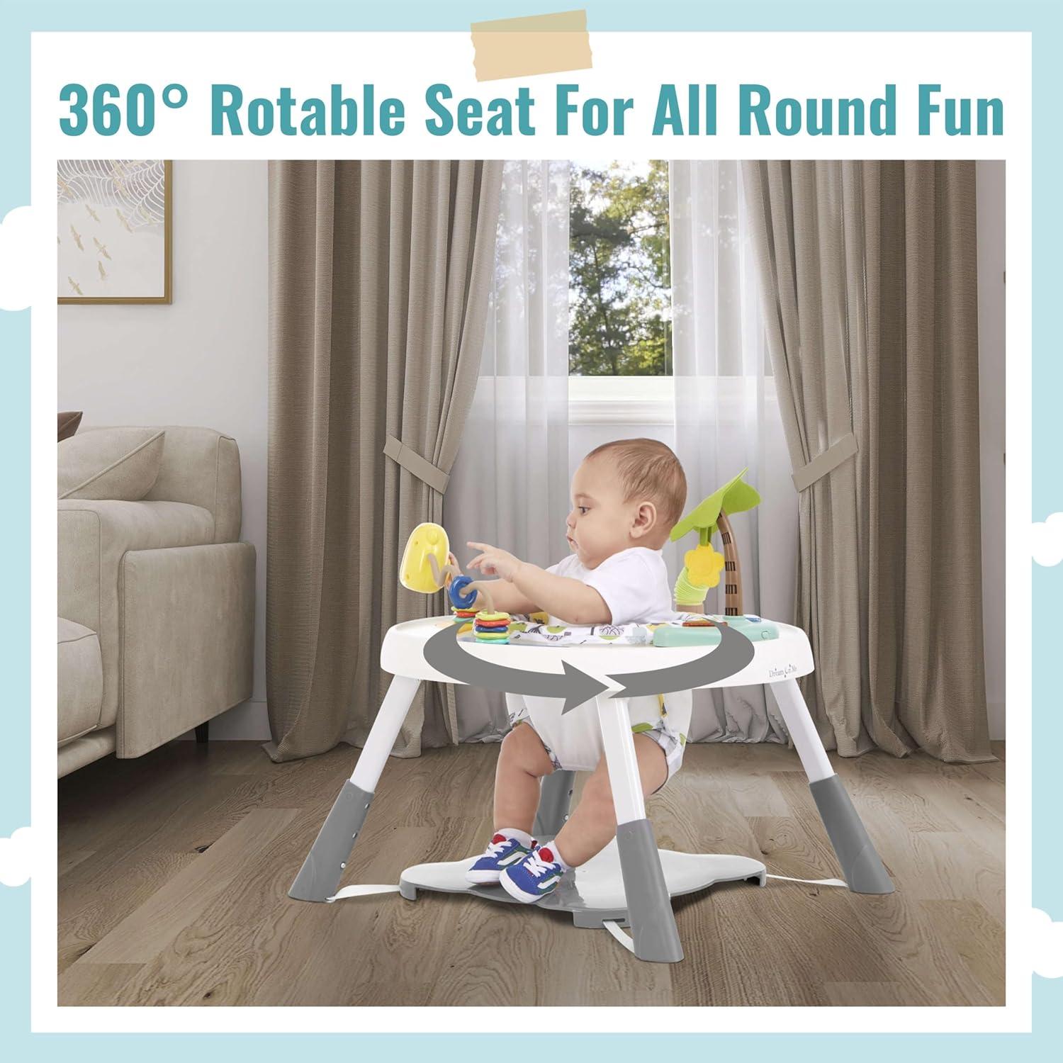 FUN IN ALL DIRECTIONS: The 3 height level adjustable positions and 360 degree rotatable seat offers fun in all directions & easy access to all the toys and activities.