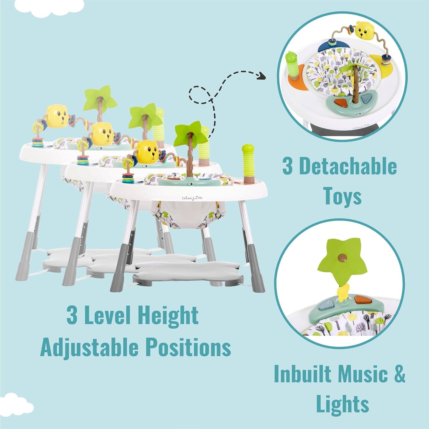 Dream On Me Curio Sit N Seek Baby Activity Center in Lime, 2 in 1 Activity Center and Play Table with 3 Detachable Toys and Music, 3 Level Height Adjustable Positions Activity Center for Baby(Mint)