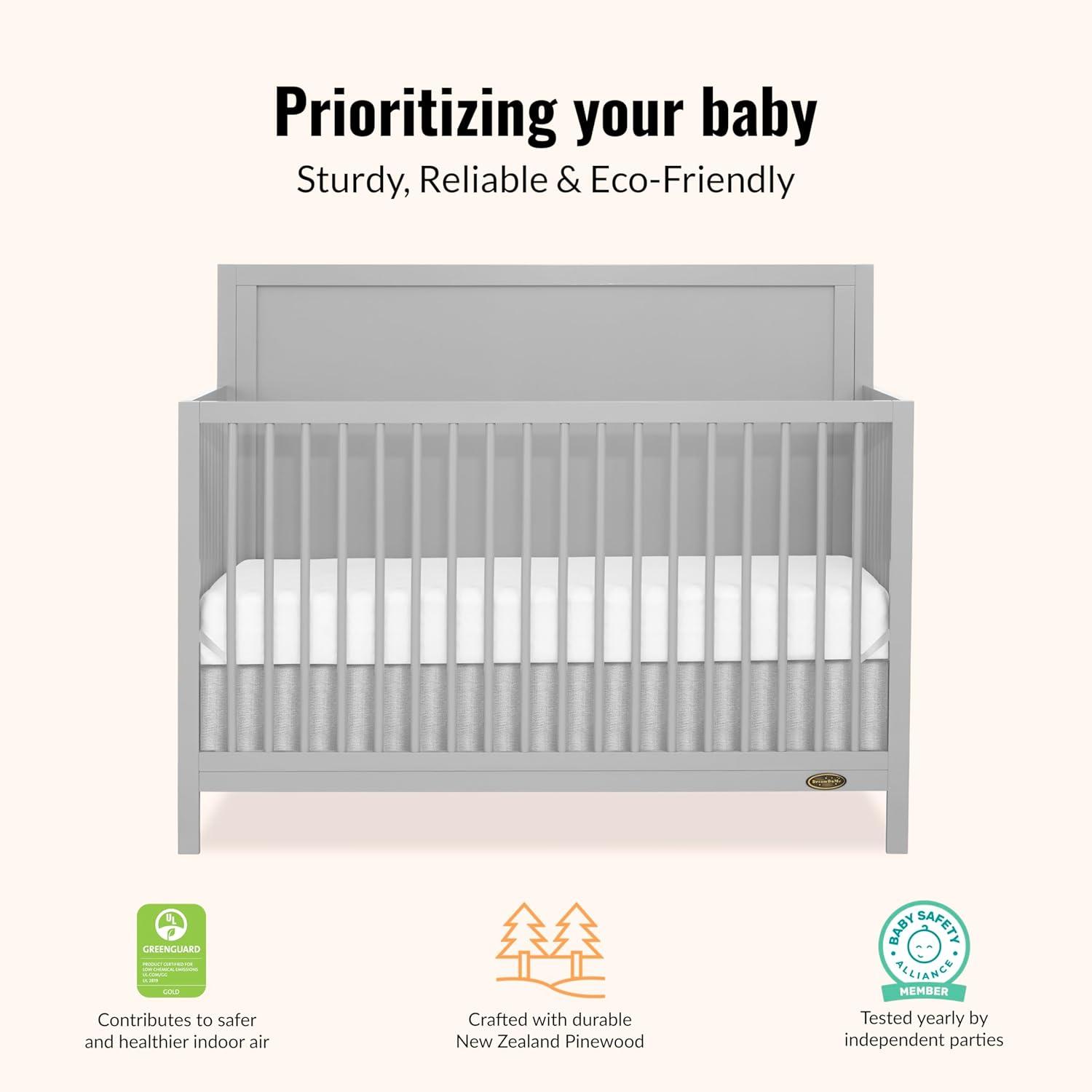 MAXIMUM SAFETY: Our Dillian 5-in-1 Convertible Crib meets the highest safety standards, including ASTM & CPSC and is also JPMA & Greenguard Gold certified, for your baby's well-being.