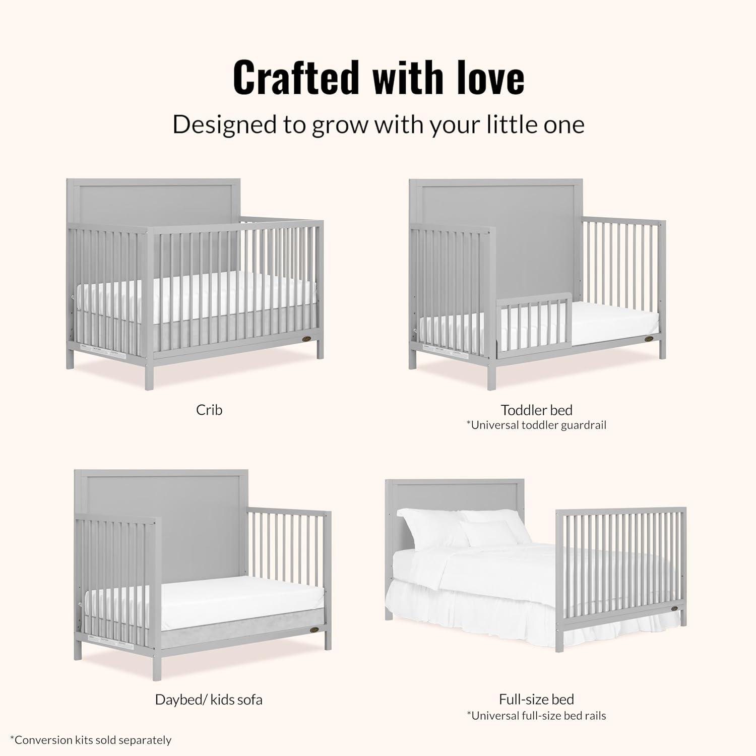 GROWS WITH YOUR CHILD: This thoughtfully designed crib adapts to their changing needs, transforming from crib to a toddler bed & full-size bed (Conversion Kit sold separately).