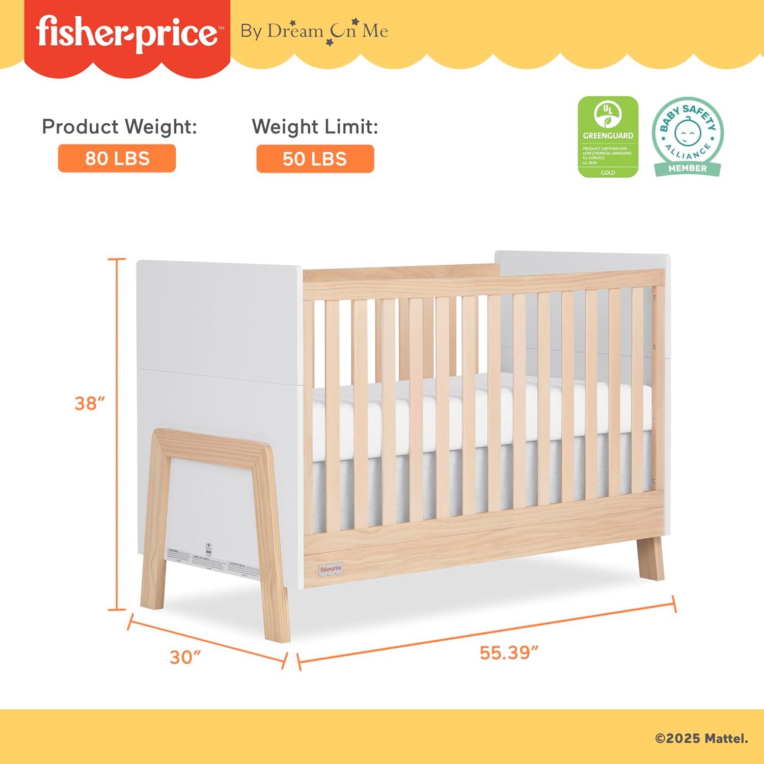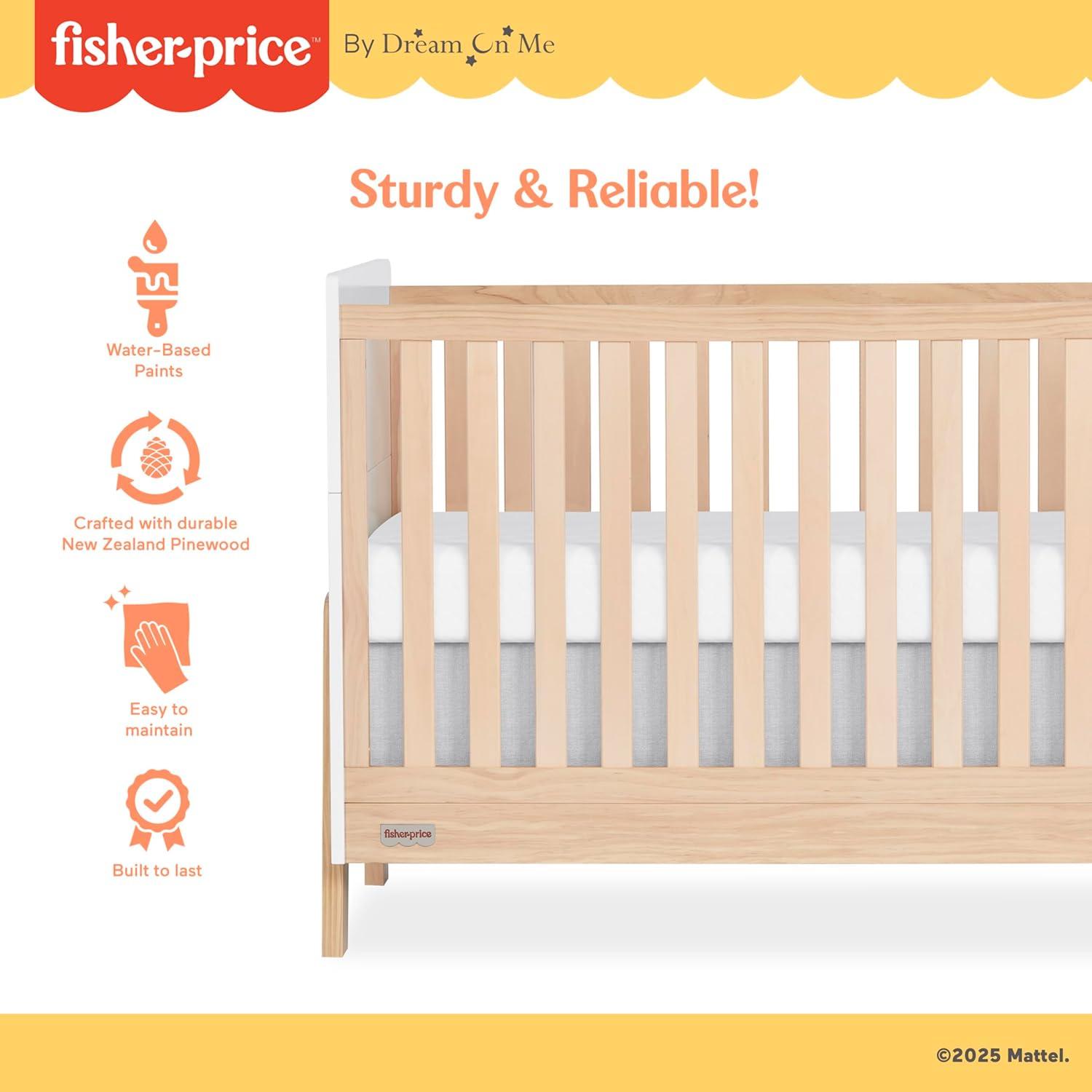 Dream On Me Fisher Price Iris 5-in-1 Convertible Crib in Meadow Green, Greenguard Gold & JPMA Certified, Converts from Baby Crib to Day Bed, Full-Size Bed and Toddler Bed(Vintage White Oak)