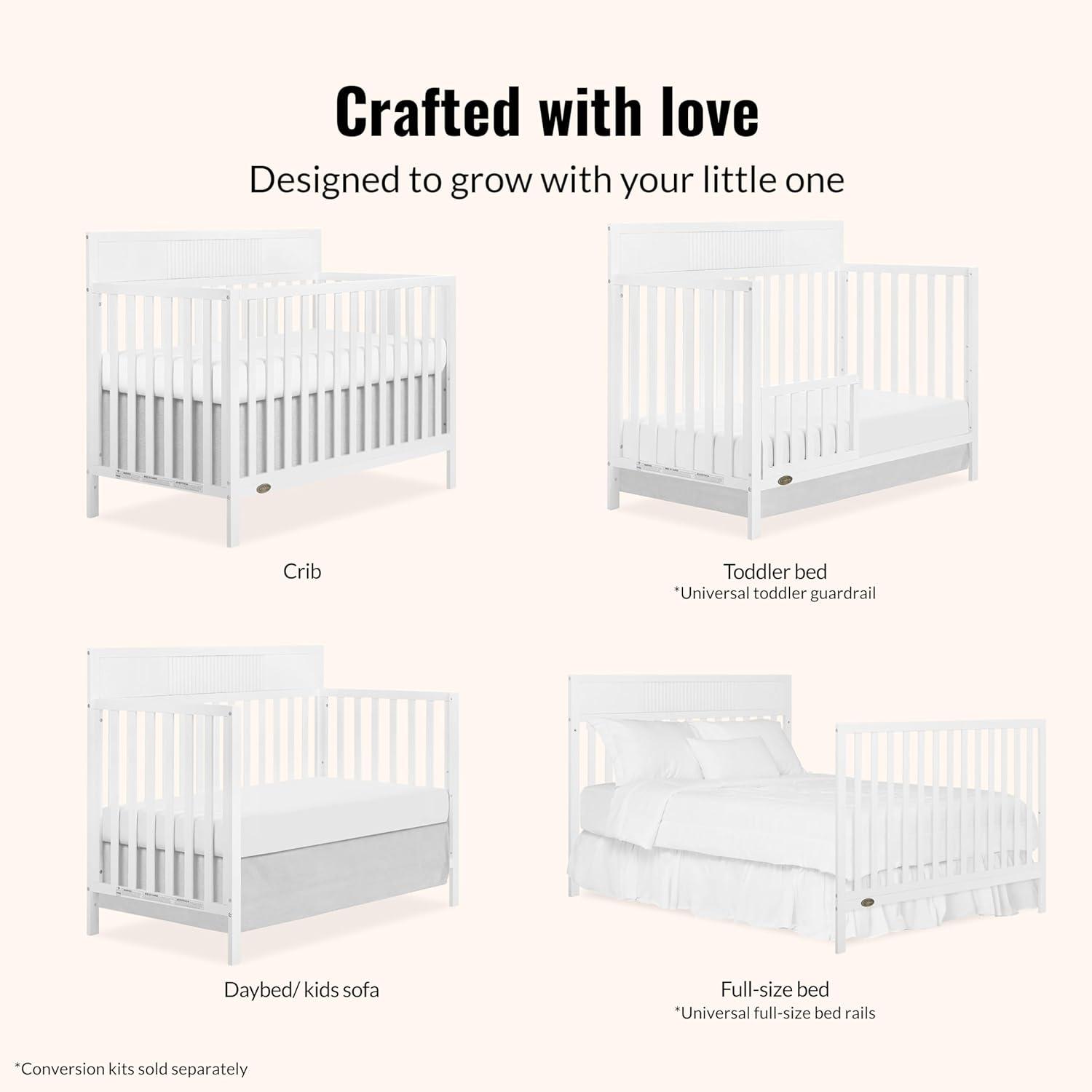 5-in-1 CONVERTIBILITY: Transitions seamlessly from a crib to a toddler bed, daybed, and full-size bed with a headboard and footboard (conversion kits sold separately).