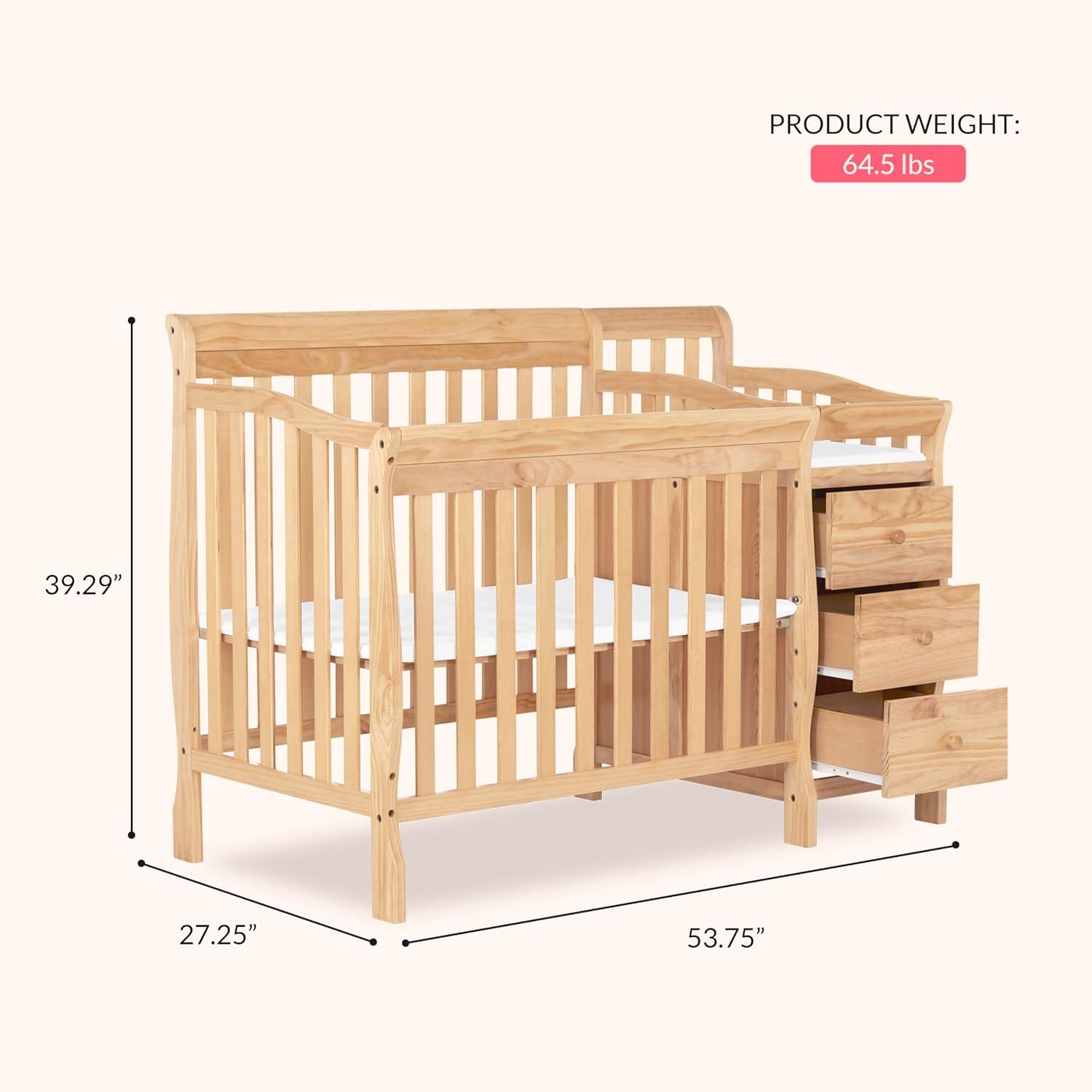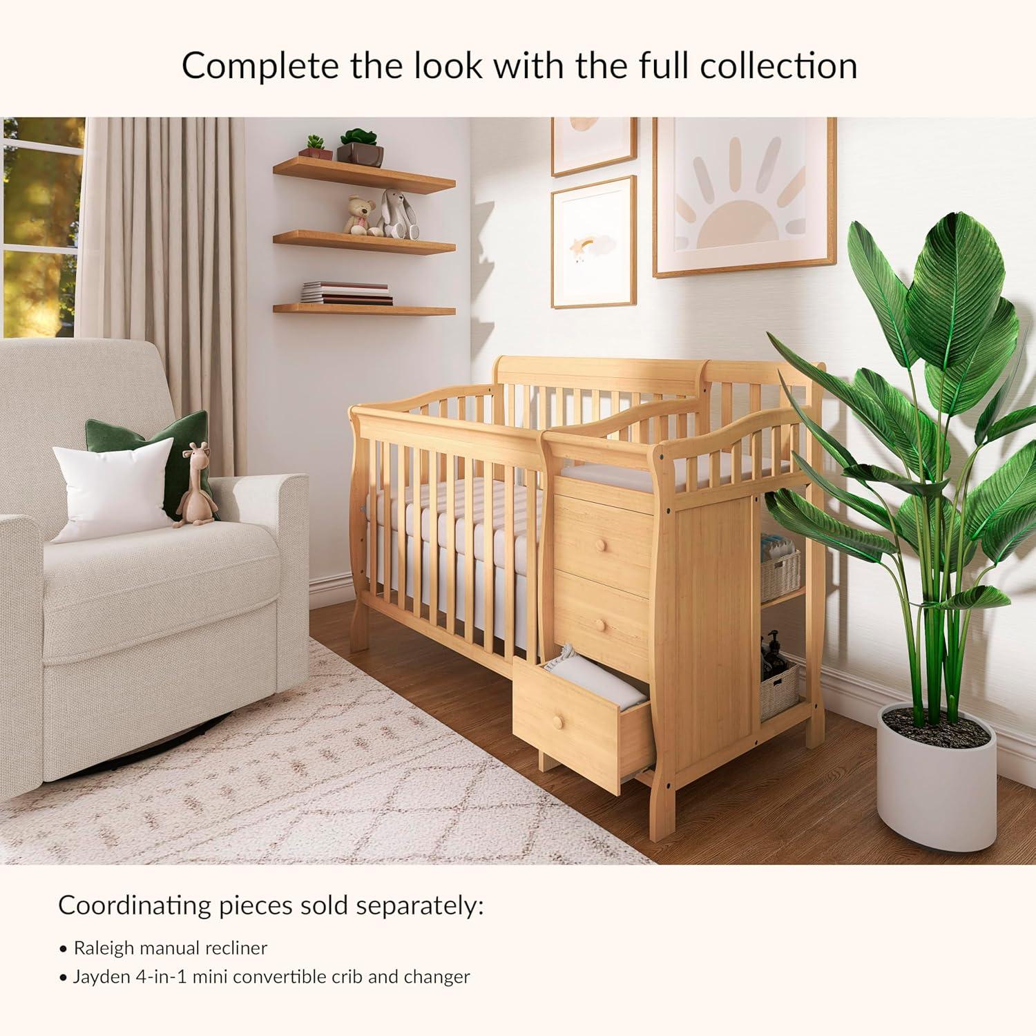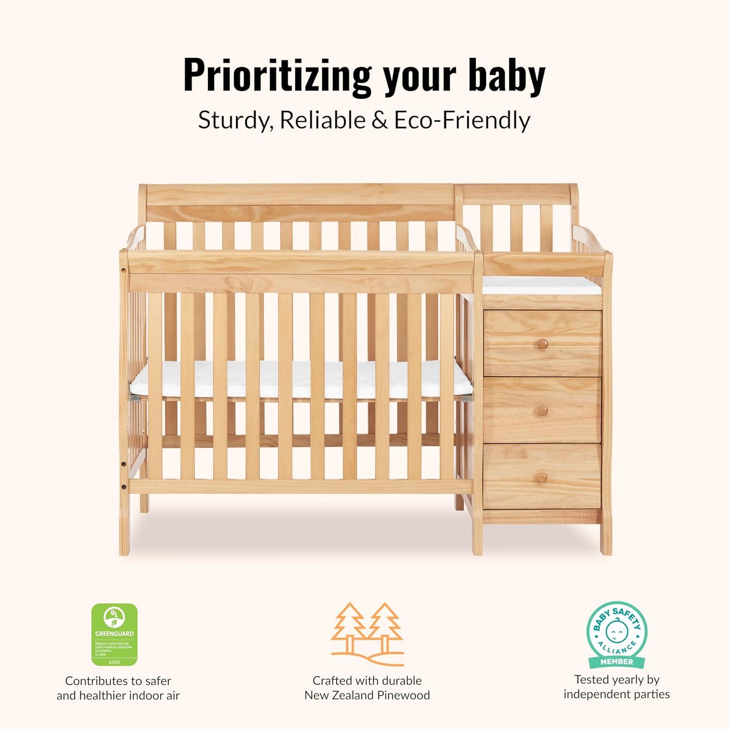 Dream On Me Jayden 4-in-1 Mini Convertible Baby Crib and Changer in Seagrass, Greenguard Gold Certified, Non-Toxic Finish, New Zealand Pinewood, 1" Mattress Pad(Natural)