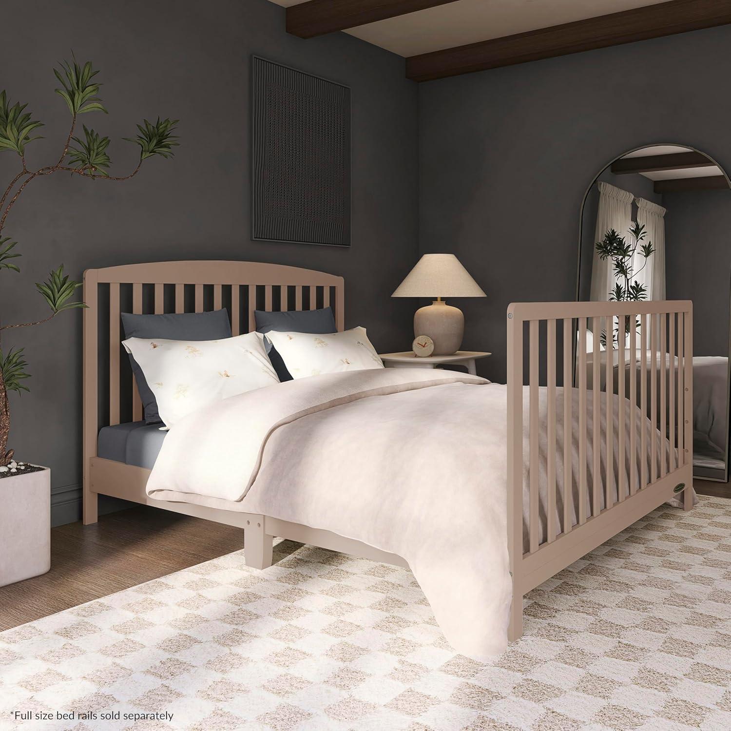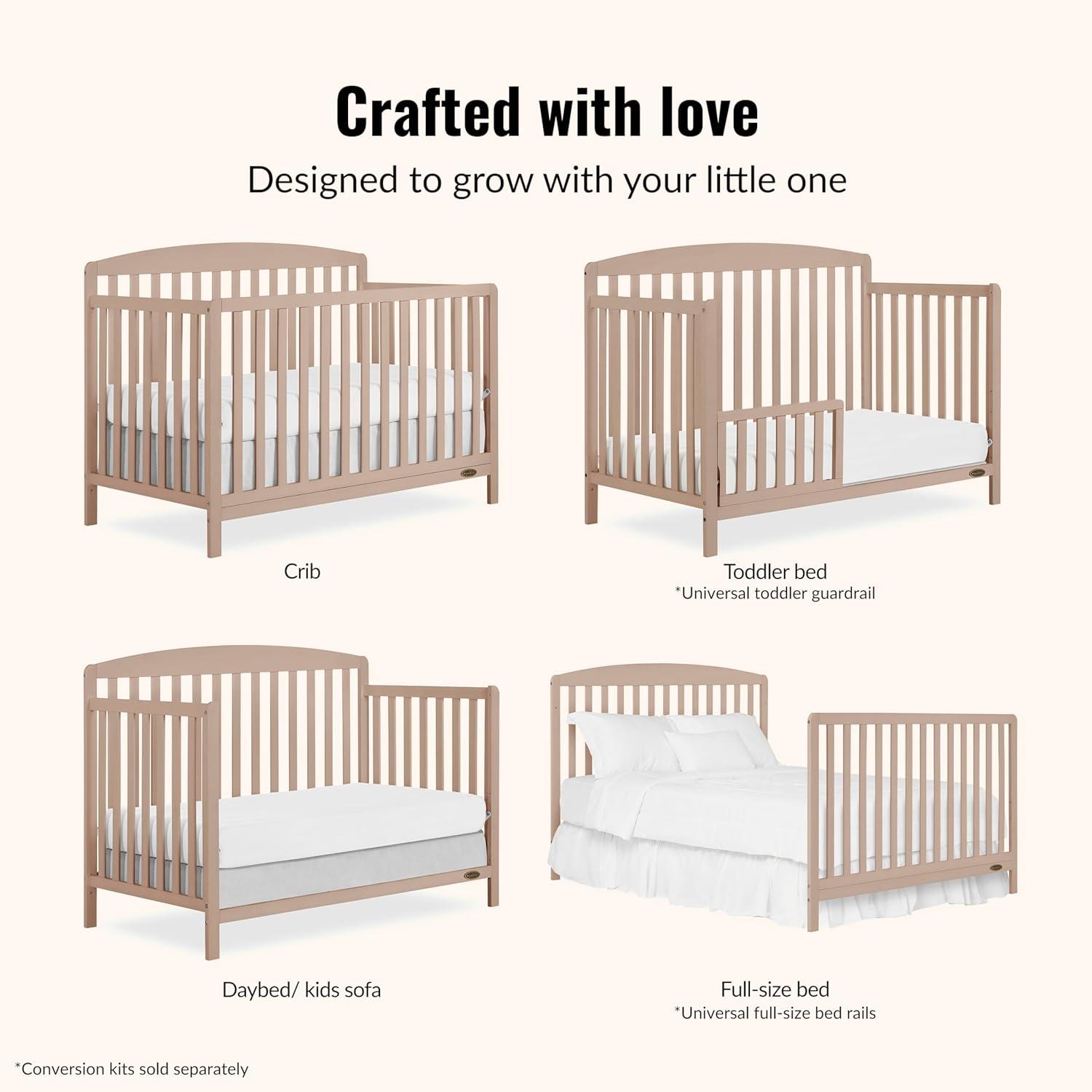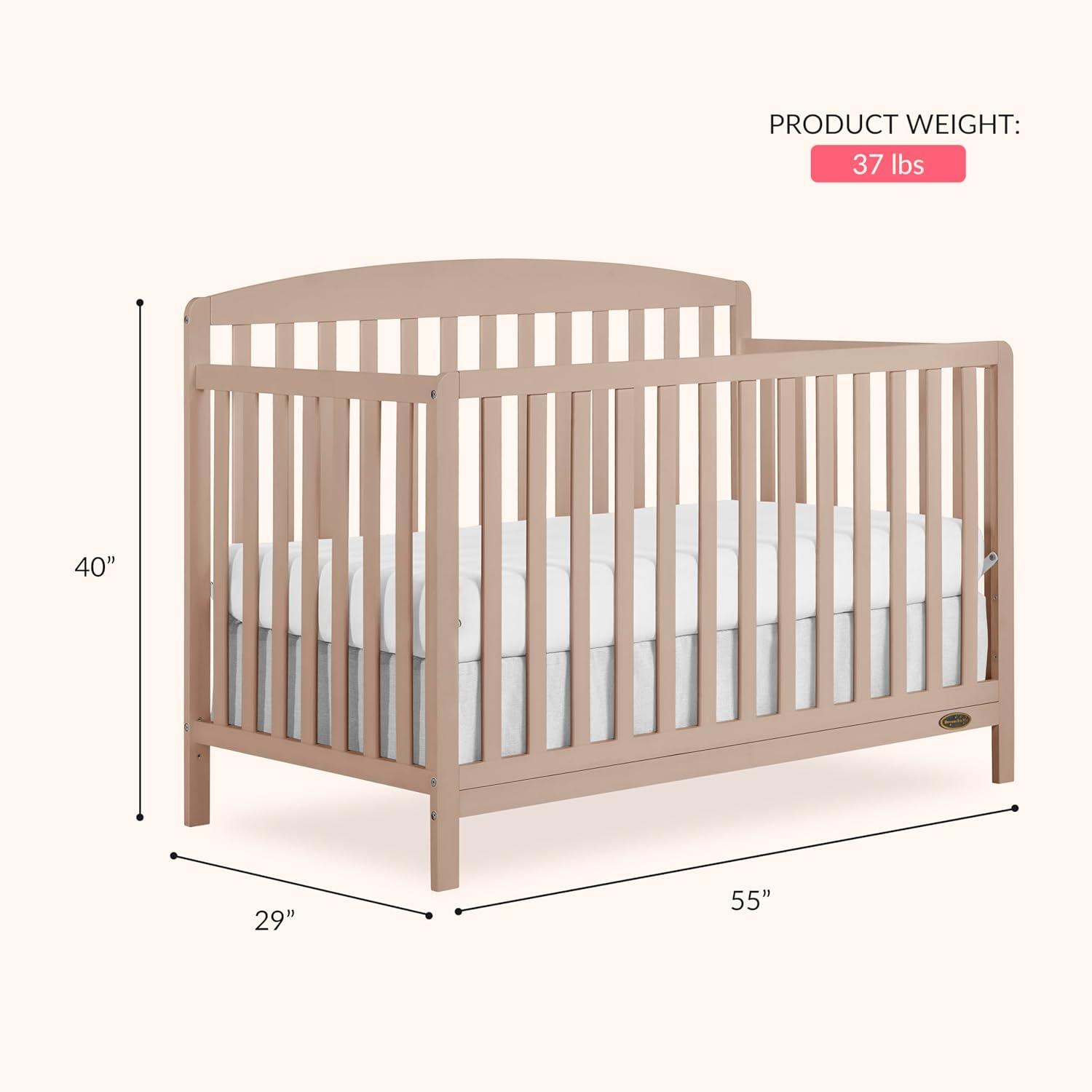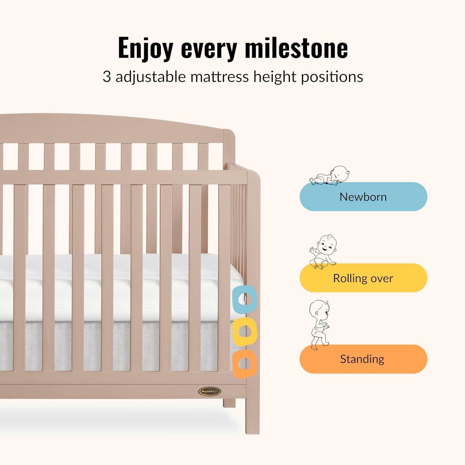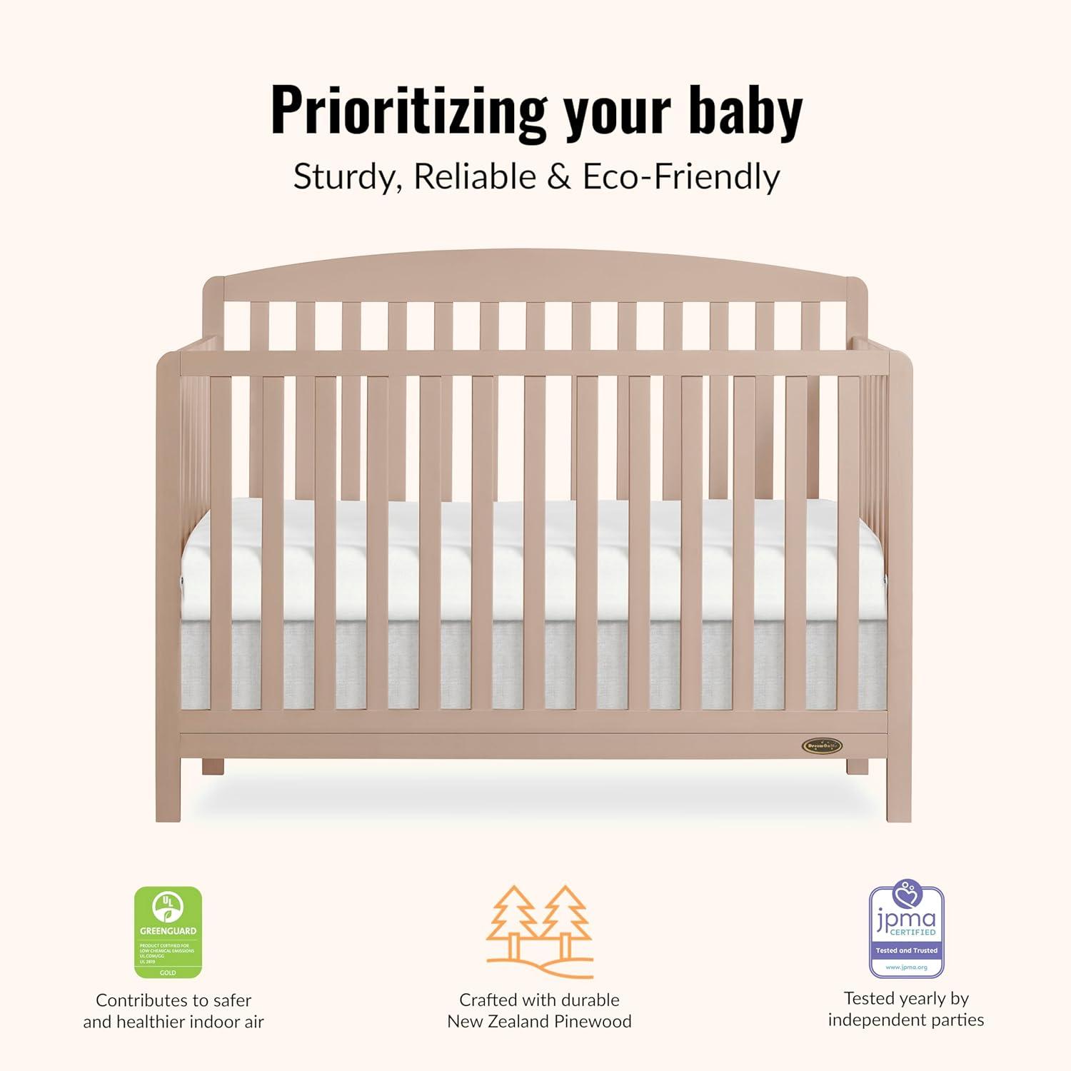 Dream On Me Odelle 5-in-1 Convertible Full-Size Baby Crib in Almond Butter, GreenGuard Gold & JPMA Converts to Toddler, Day & Full-Size Bed, Sustainable Pinewood, 3 Mattress Heights(Almond Butter)