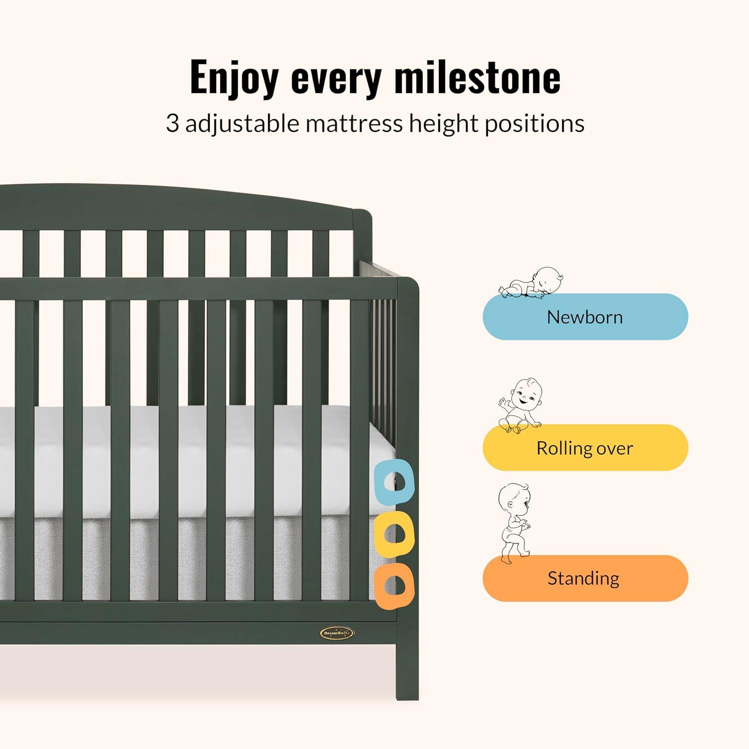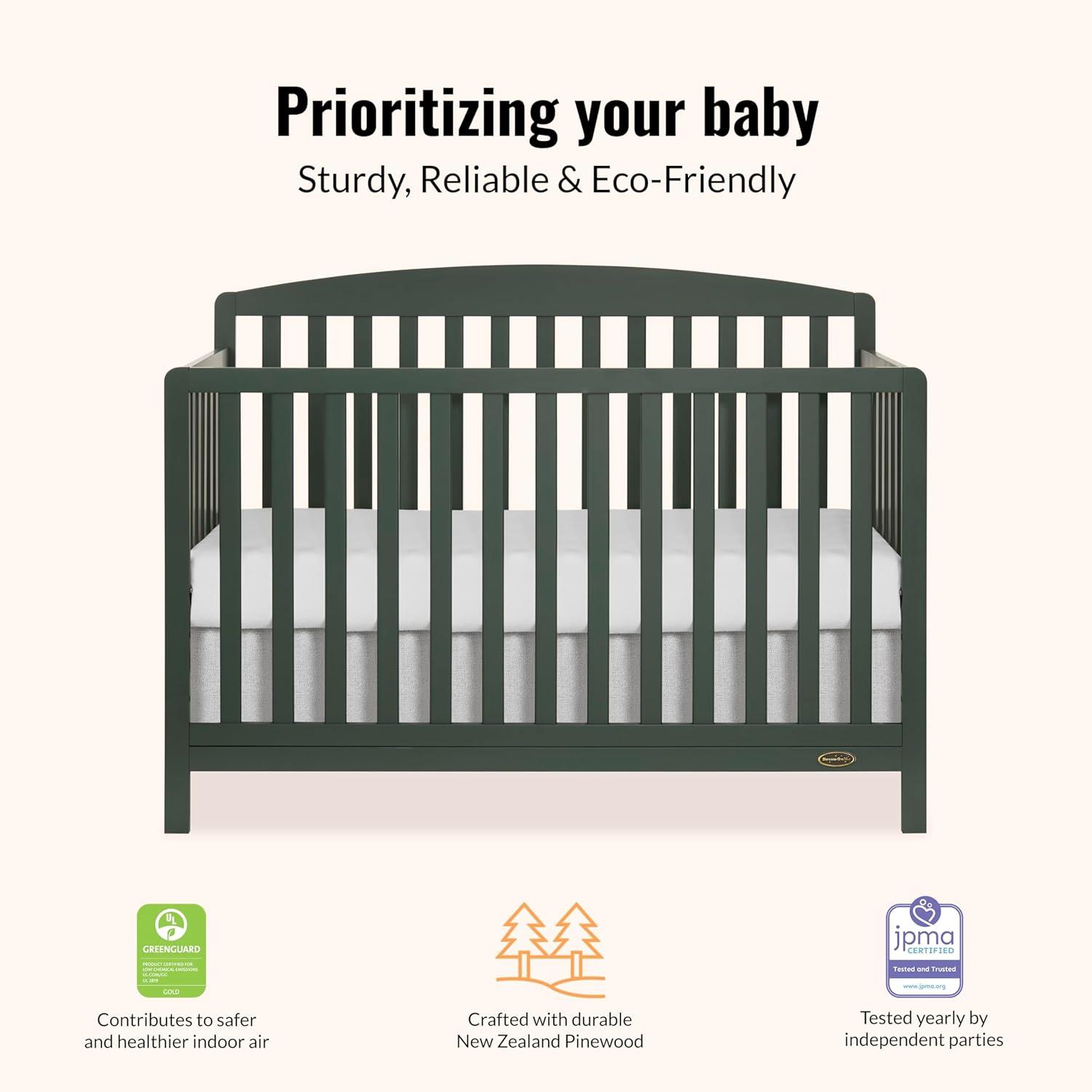 Dream On Me Odelle 5-in-1 Convertible Full-Size Baby Crib in Almond Butter, GreenGuard Gold & JPMA Converts to Toddler, Day & Full-Size Bed, Sustainable Pinewood, 3 Mattress Heights(Forest Green)