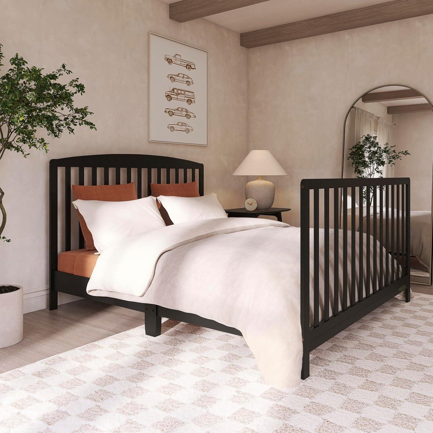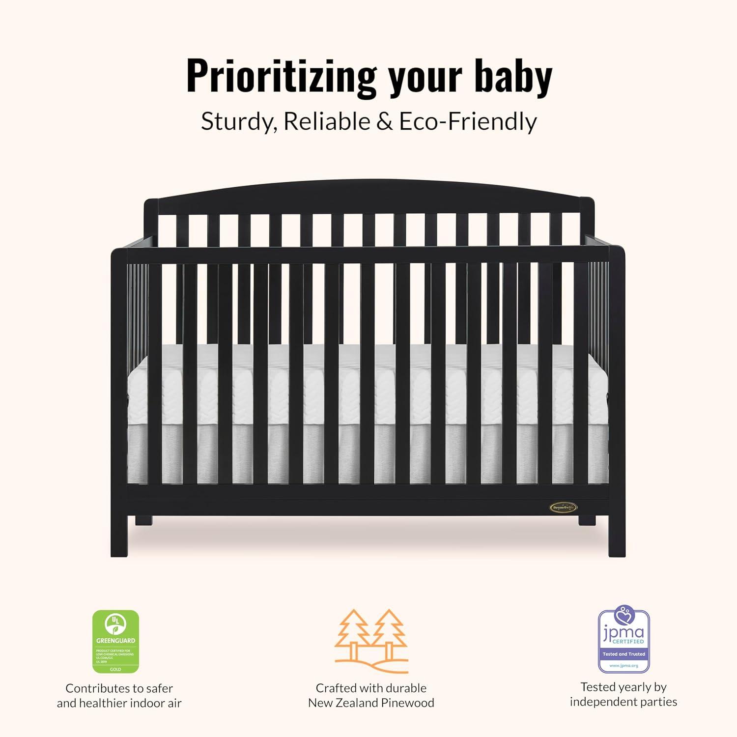 The Odelle 5-in-1 Convertible Crib is designed to grow alongside your child, offering a practical and stylish solution for every stage of early life. Starting as a cozy baby crib (mattress sold separately), it easily converts into a toddler bed, daybed, and even a full-size bed with or without a footboard (conversion kits sold separately). This versatile design provides long-term value, adapting seamlessly to your child’s needs from infancy through childhood while maintaining a timeless look that fits any nursery. Comfort and convenience are at the heart of the Odelle crib. With three adjustable mattress height options, it ensures that parents can easily reach newborns while keeping active toddlers safe and secure. The thoughtful design grows with your child, offering a comfortable sleep environment that evolves with their development. Built to last, the Odelle crib features high-quality craftsmanship using sustainably sourced New Zealand pinewood and a heavy-duty metal mattress support frame for exceptional strength and stability. Packaging is tested to minimize the risk of damage during transit, and assembly is straightforward, giving you a durable crib you can trust for years to come. Safety is paramount, and the Odelle crib exceeds expectations. Expertly designed to meet or surpass ASTM and CPSC safety standards, it is also GREENGUARD Gold Certified, screened for over 10,000 chemicals and VOCs to ensure cleaner indoor air for your baby. Independently tested and CPSIA compliant, it maintains lead and phthalate levels well below federal limits, offering a secure and healthy sleep environment. Everyday convenience is built into the design with smooth edges, sturdy construction, and practical features that make the crib easy to use daily. Its versatile style fits seamlessly into bedrooms, nurseries, or shared spaces, blending functionality with aesthetic appeal for modern family life. Measuring 54.72” L x 29.33” W x 40.16” H and supporting a weight limit of 50 lbs, the Odelle crib is backed by a 1-year limited manufacturer’s warranty. For optimal safety and comfort, pair it with a Dream On Me or evolur full-size GREENGUARD Gold Certified mattress. With the Odelle 5-in-1 Convertible Crib, you’re choosing a long-lasting, adaptable, and safe space where your child can sleep, grow, and thrive.