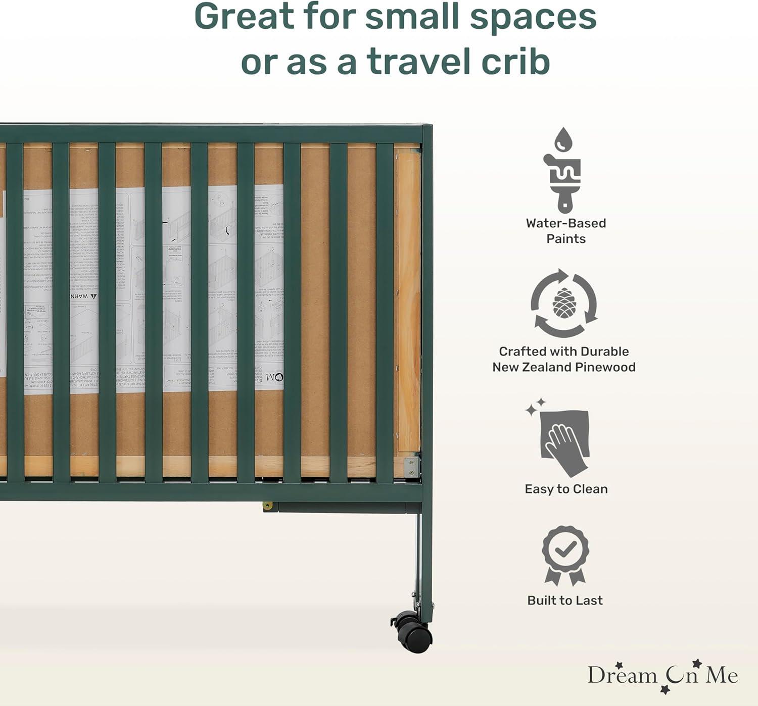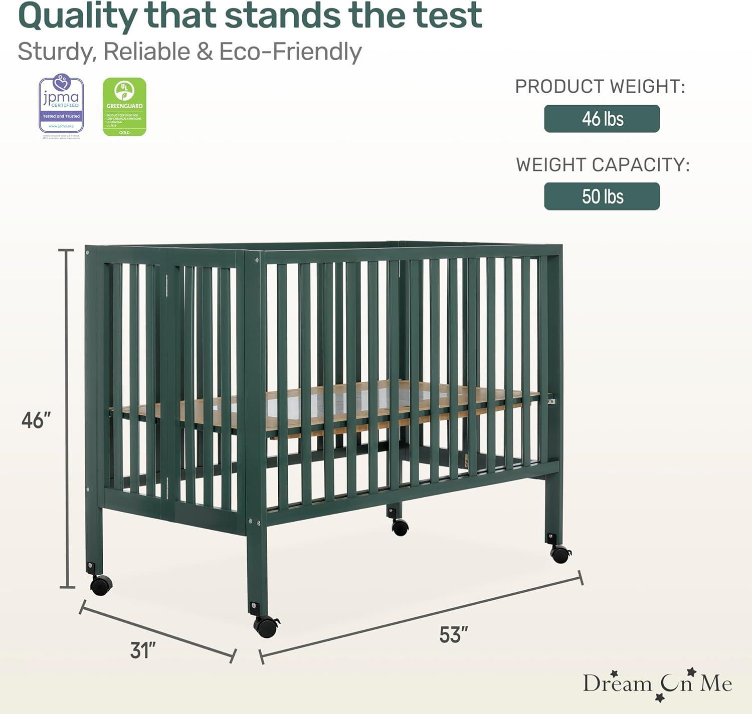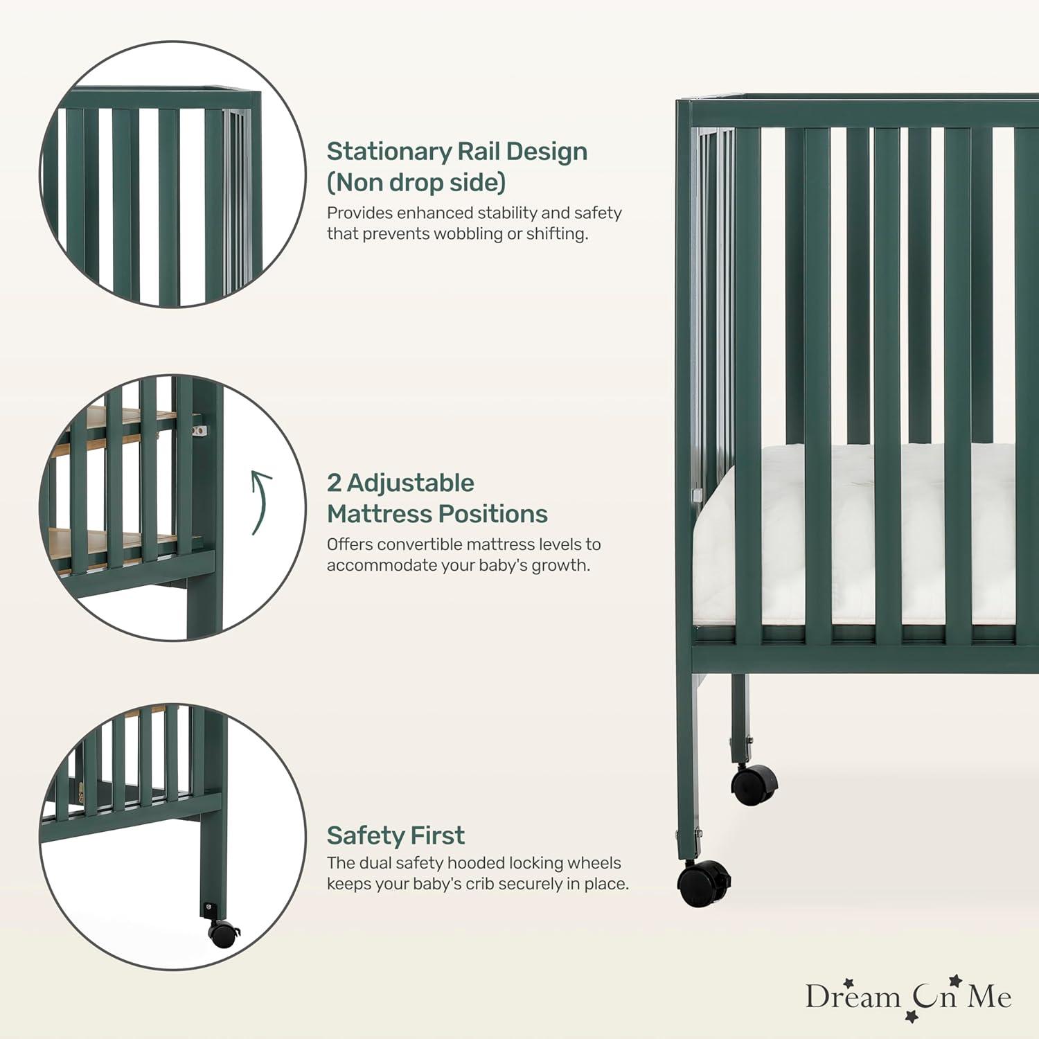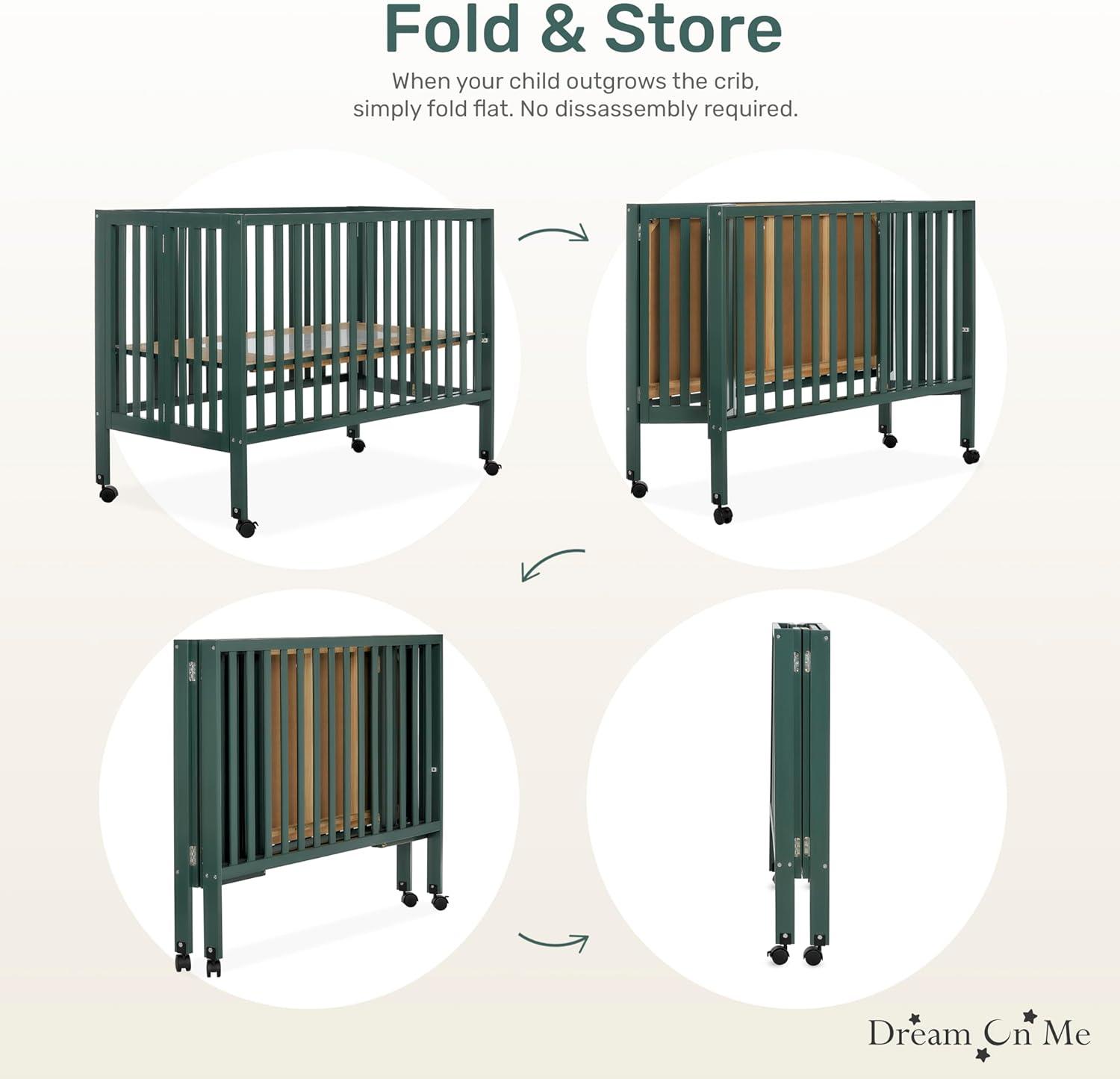 Dream On Me Quinn Full-Size Portable Baby Crib in White, GreenGuard Gold & JPMA, Patented Quick Fold System, Adjustable Mattress Support, Smooth Wheels, Compact Design, Safe Sleep Assurance(Olive)