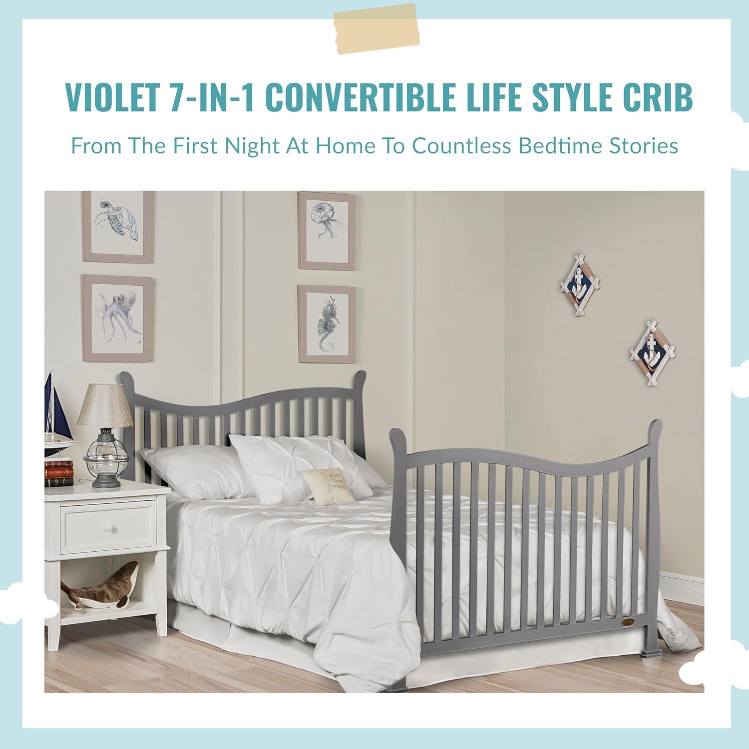 Dream On Me Violet 7-In-1 Convertible Life Style Crib In White, Greenguard Gold Certified, 4 Mattress Height Settings, Made Of Sustainable New Zealand Pinewood(Storm Grey)